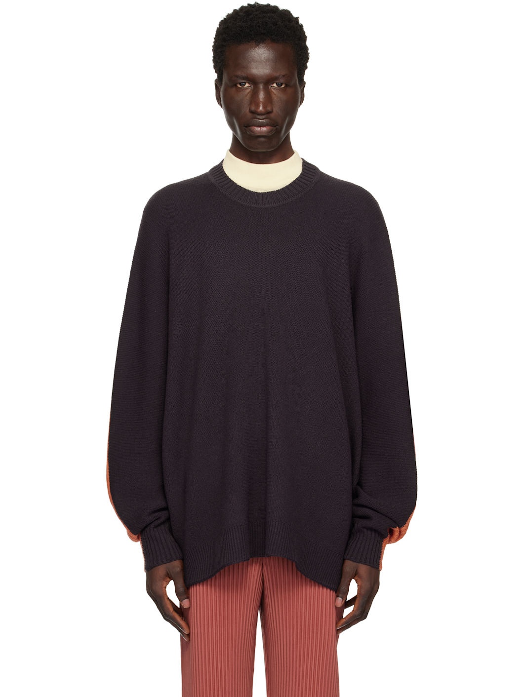 Oversized knit wool sweater. · Rib-knit crewneck, hem, and cuffs · Yoke sleeves Supplier color: Brown 100% wool. Made in Japan 251729M201000