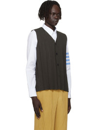 Twill vest. · Pleats throughout · Y-neck · Button closure · Seam pockets Supplier color: Dark brown 100% polyester. Made in Philippines 252729M185000