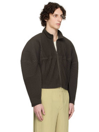 Garment-pleated polyester tricot jacket. · Stand collar · Zip closure · Welt pockets · Dolman sleeves Supplier color: Mud brown 100% polyester. Made in Philippines 252729M180004