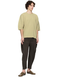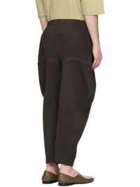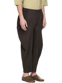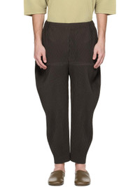 Garment-pleated polyester tricot trousers. · Concealed drawstring at elasticized waistband · Two-pocket styling · Offset button fly Supplier color: Mud brown 100% polyester. Made in Philippines 252729M191019