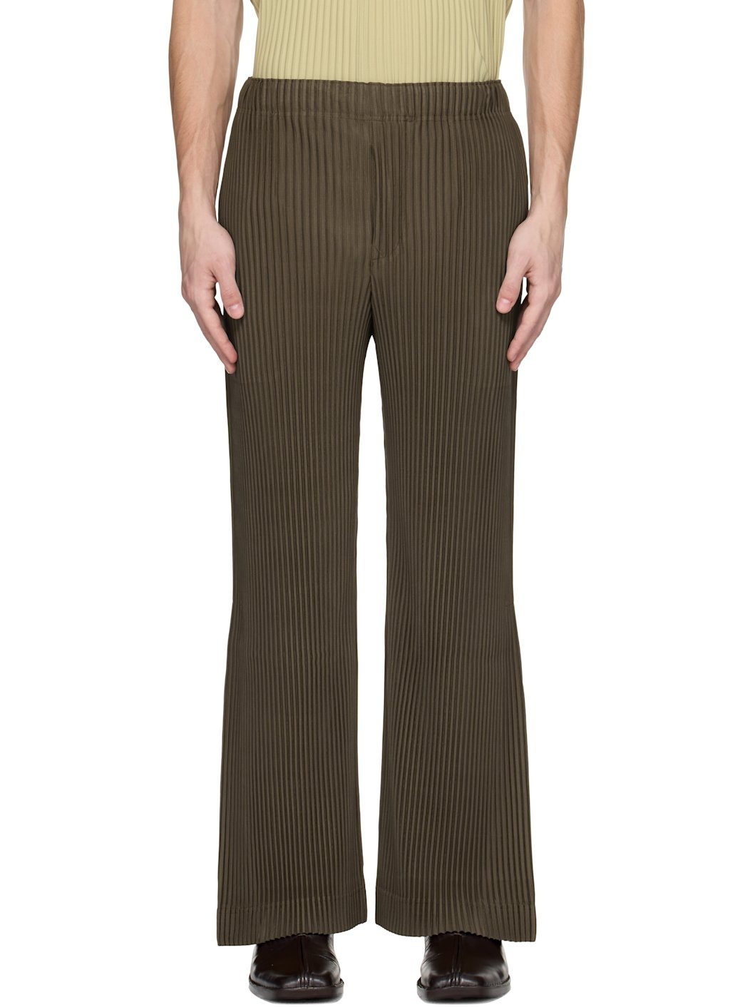 Garment-pleated polyester tricot trousers. · Concealed drawstring at elasticized waistband · Two-pocket styling · Button fly Supplier color: Sepia brown 100% polyester. Made in Japan 252729M191017