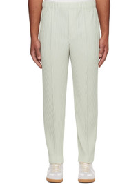 Garment-pleated tricot trousers. · Belt loops at elasticized waistband · Two-pocket styling · Button fly Supplier color: Strata gray 100% polyester. Made in Japan 252729M191049