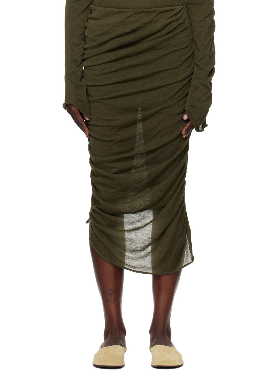 Green Ambiguous Wool Midi Skirt