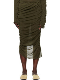 Knit wool midi skirt. Draping and gathering throughout. · Rib-knit elasticized waistband · Rolled edge at hem · Asymmetrical hem Supplier color: Misty green 100% wool. Made in Japan 251809F092001