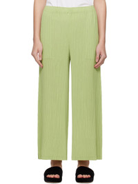 Wide-leg garment-pleated recycled polyester tricot trousers. · Elasticized waistband · Two-pocket styling · Vented cuffs Supplier color: Moegi green 100% recycled polyester. Made in Japan 252809F087004