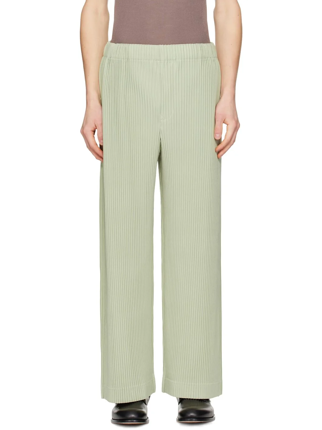 Garment-pleated tricot trousers. · Wide-leg · Mid-rise · Drawstring at elasticized waistband · Two-pocket styling · Button fly Supplier color: Wavellite Green 100% polyester. Made in Japan 252729M191065