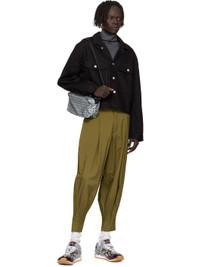 Technical ripstop trousers. · Tapered · Concealed drawstring at elasticized waistband · Four-pocket styling · Zip fly · Pleats at front and back waist · Accordion pleats at cuffs · Loops at back waist Supplier color: Khaki 100% polyester. Made in Philippines 252729M191003