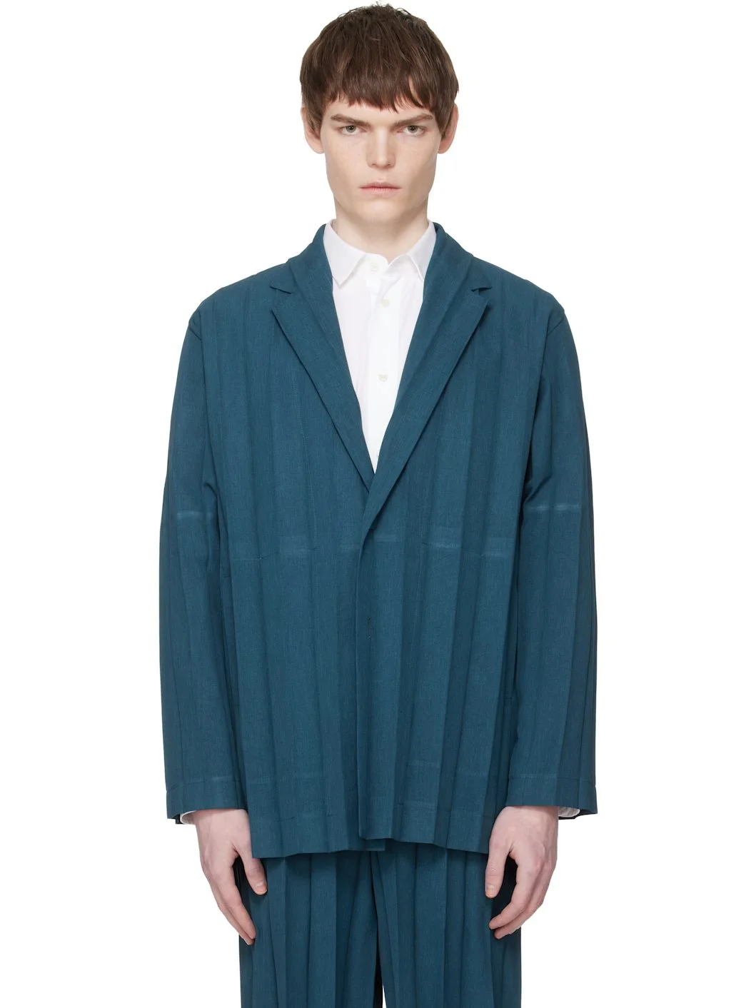 Garment-pleated twill blazer. · Notched lapel · Button closure · Welt pockets at front · Partially lined Supplier color: Navy 100% polyester. Made in Philippines 261729M195014