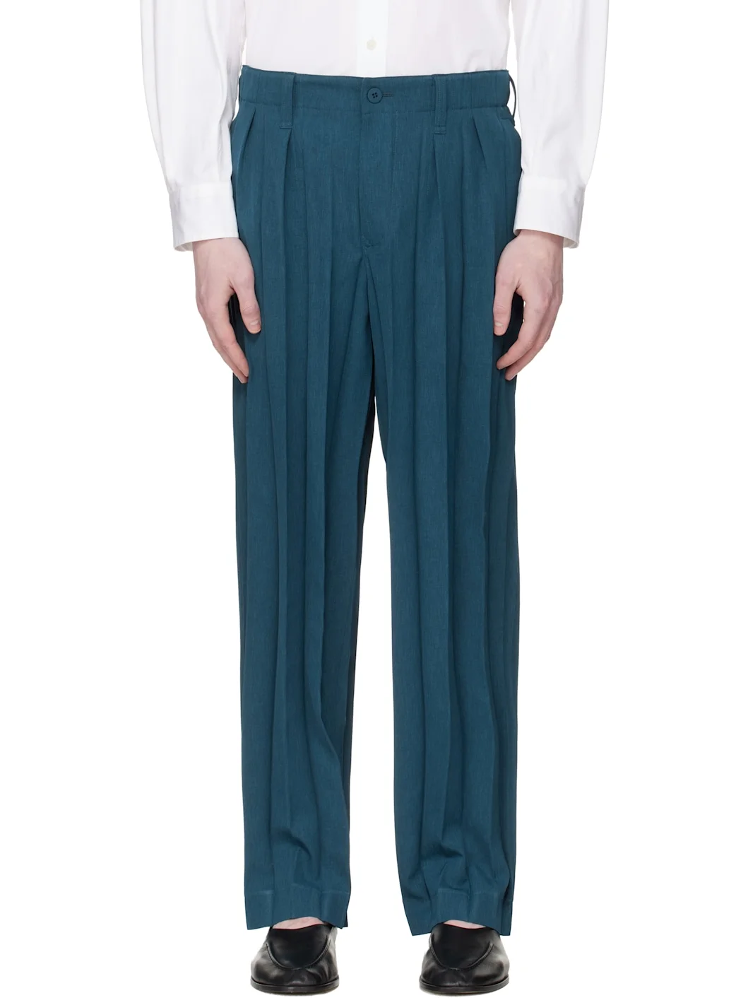 Garment-pleated twill trousers. · Straight-leg · Belt loops · Two-pocket styling · Button fly Supplier color: Navy 100% polyester. Made in Philippines 261729M191049