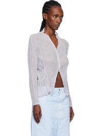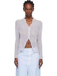 Sheer garment-pleated recycled chiffon cardigan. · Stand collar · Two-way zip closure Supplier color: Light purple 100% recycled polyester. Made in Japan 252809F107008