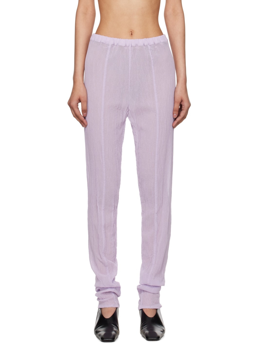 Slim-fit semi-sheer cotton gauze trousers. · Elasticized waistband · Extended cuffs Supplier color: Purple 100% cotton. Made in Japan 242809F087002