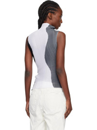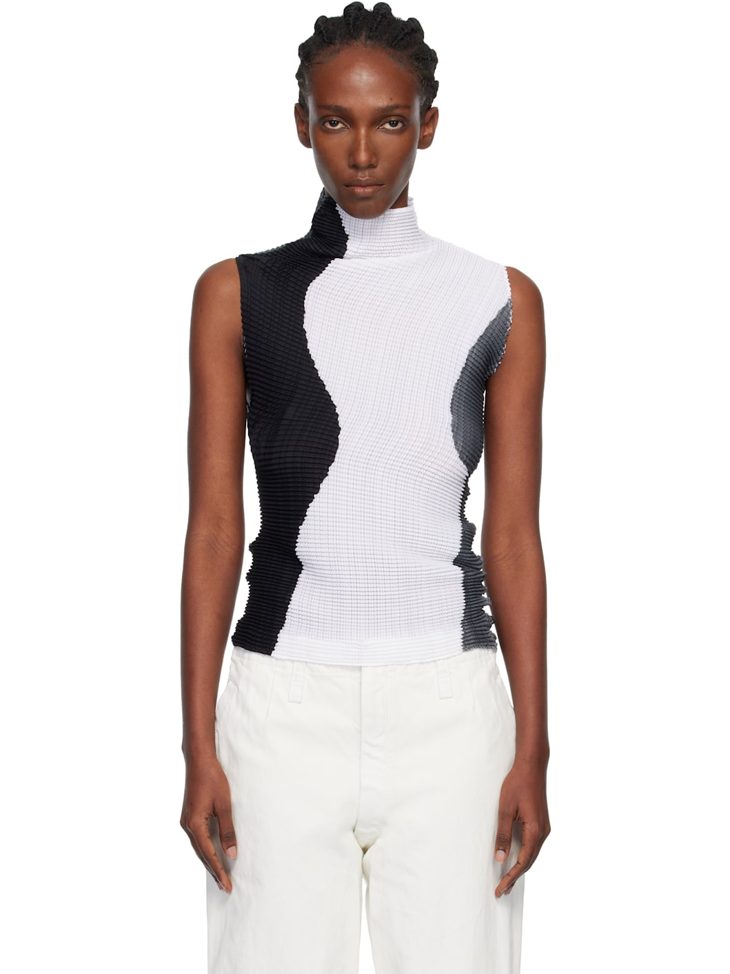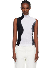 Garment-pleated recycled tricot top. · Colorblocking throughout · Draped turtleneck Supplier color: Black/White 100% recycled polyester. Made in Japan 252809F111005