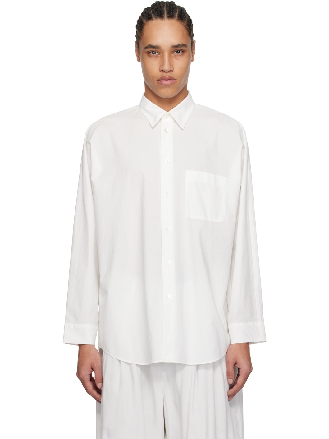 Cotton poplin shirt. · Spread collar · Button closure · Patch pocket at chest · Shirttail hem · Adjustable buttoned barrel cuffs · Pleat at back Supplier color: White 100% cotton. Made in Philippines 251729M192011