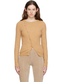 Rib knit nylon and acrylic-blend cardigan. · Asymmetric construction · Crewneck · Offset button closure Part of the Le Papier collection. Supplier color: Beige 33% polyamide, 33% acrylic, 28% alpaca, 6% wool. Made in Italy 231553F095021