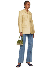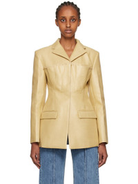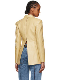 Woven nylon- and cotton-blend raffia blazer. · Notched lapel · Single-button closure · Raw edge at patch pockets · Flap pockets · Padded shoulders · Woven drawstring with acetate beaded detailing at back · Vent and raw edge detailing at back · Partial twill lining Part of Le Raphia collection. Supplier color: Beige Body: 71% polyamide, 29% cotton. Lining: 48% acetate, 46% cotton, 6% elastane. Lining 2: 65% polyester, 35% cotton. Made in Romania 231553F057009
