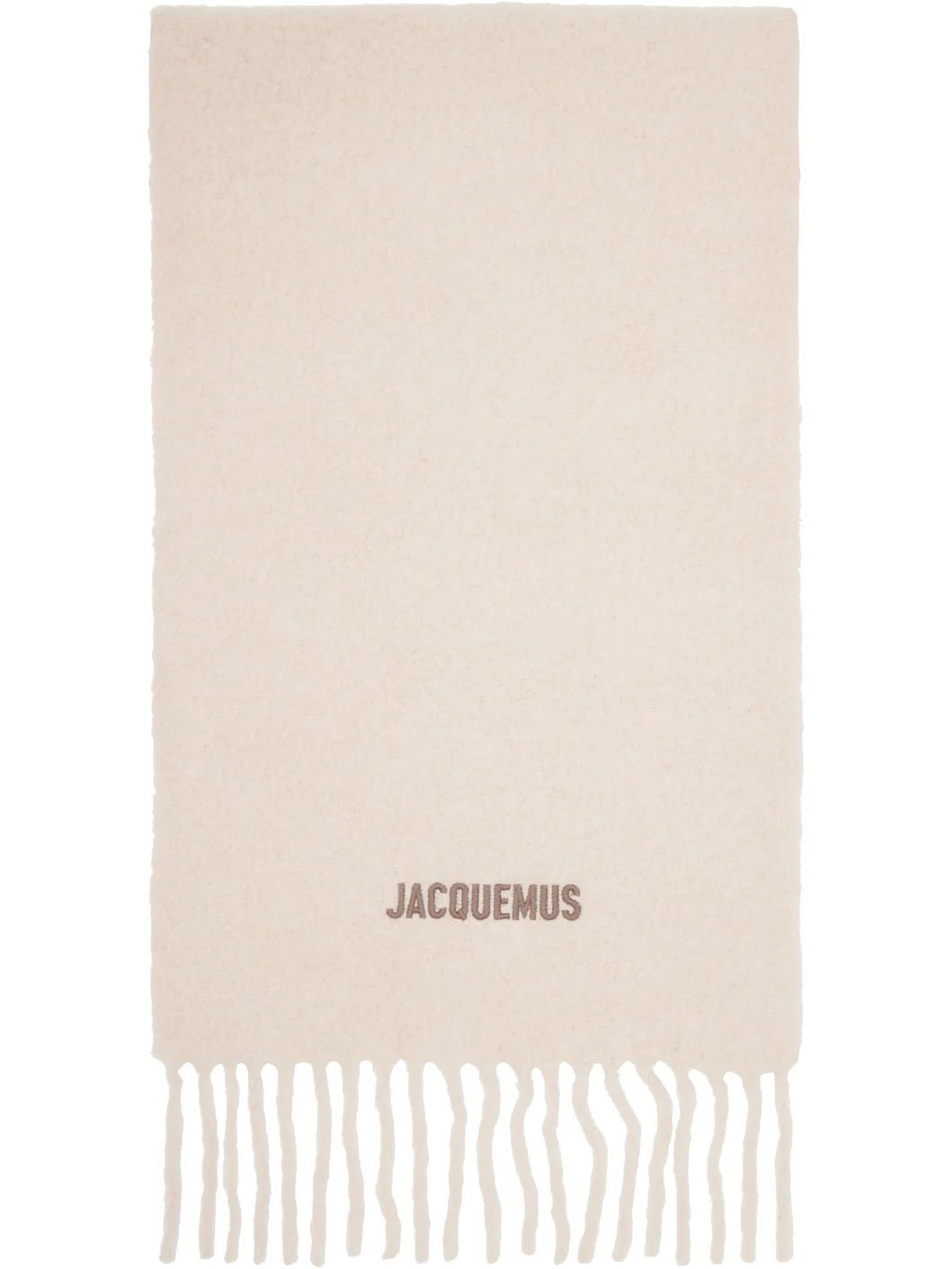 Rectangular brushed knit alpaca-blend scarf. · Hand-dyed gradient throughout · Logo embroidered at face · Fringed detailing at ends · L96.5" x W15" Part of the Les Classiques collection. Supplier color: Multi-beige 80% alpaca, 20% polyamide. Made in Italy 252553M150009