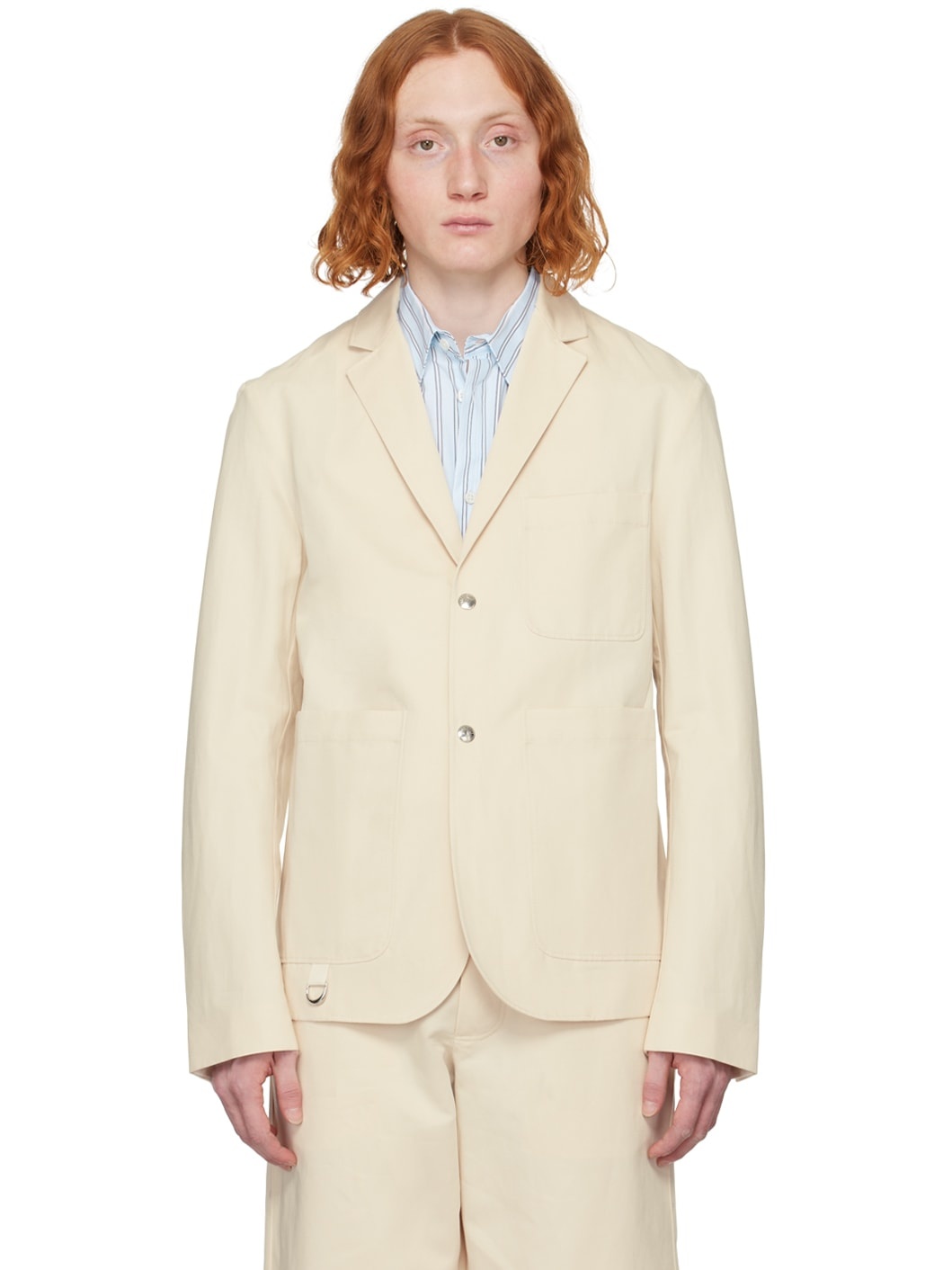 Cotton- and linen-blend twill blazer. · Notched lapel · Press-stud closure · Patch pockets · D-ring at front · Single-press-stud cuffs · Vent at back hem · Unlined · Logo-engraved silver-tone hardware Part of the Les Sculptures collection. Supplier color: Beige 82% cotton, 18% linen. Made in Portugal 241553M195002