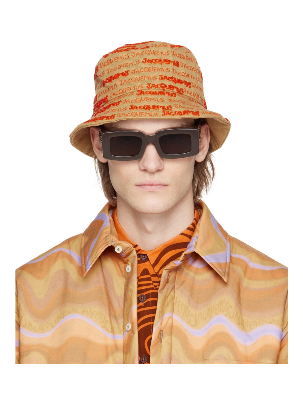 Beige & Orange Le Raphia 'Le Bob Bordado' Bucket Hat