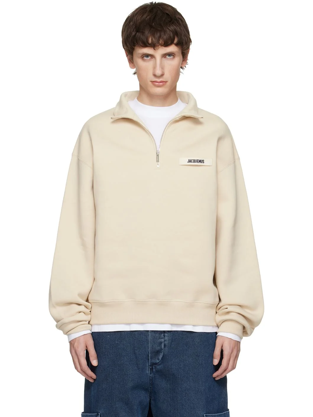Cotton fleece sweatshirt. · Stand collar · Half-zip closure · Grosgrain logo patch at chest · Rib-knit hem and cuffs · Dropped shoulders Supplier color: Beige 100% cotton. Made in Portugal 252553M202004
