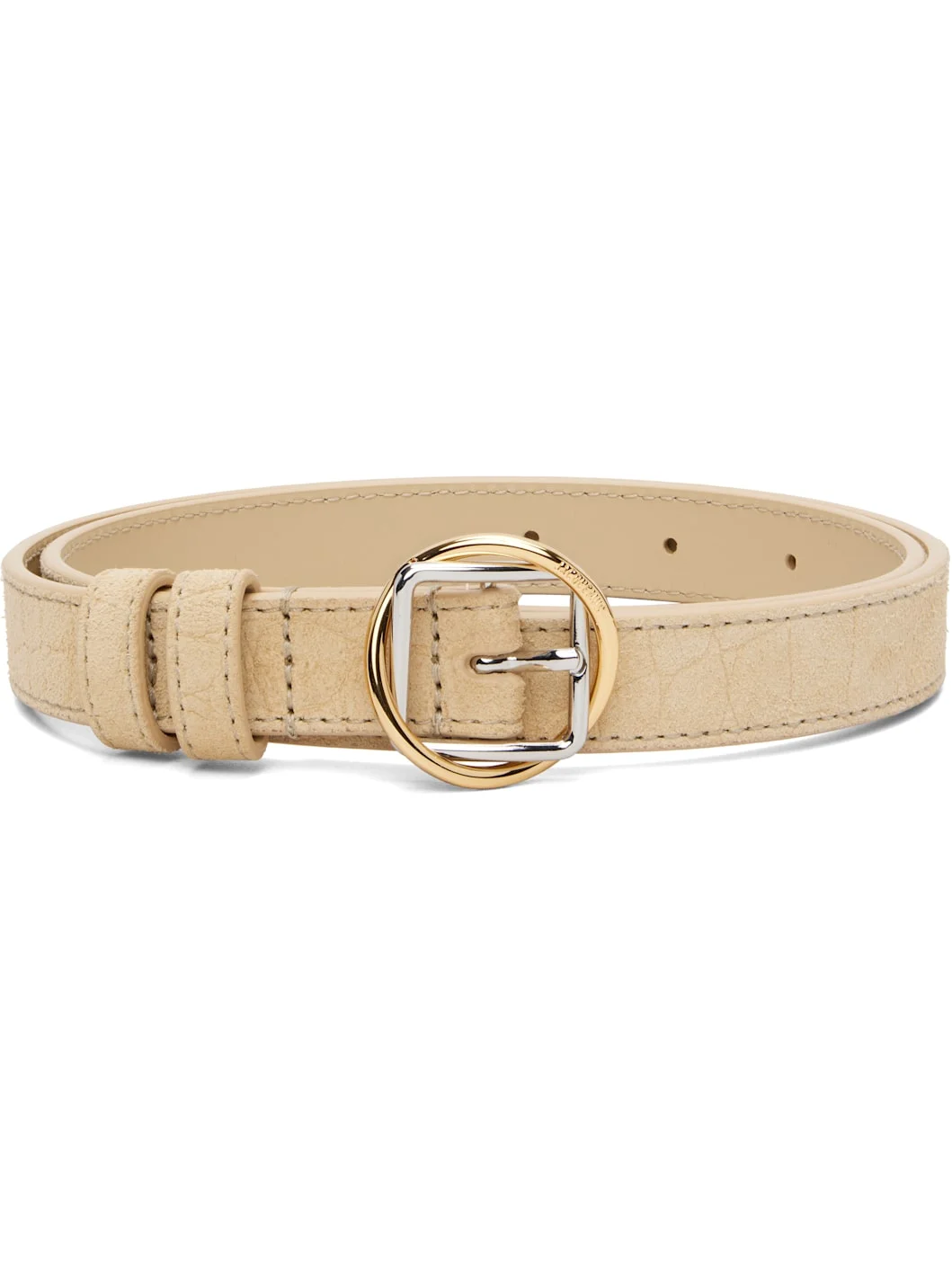 Croc-embossed calfskin suede belt. · Keeper loops at length · Pin-buckle fastening · Logo-engraved gold- and silver-tone hardware · W0.75" Supplier color: Beige 100% calfskin. Made in Italy 261553F001001