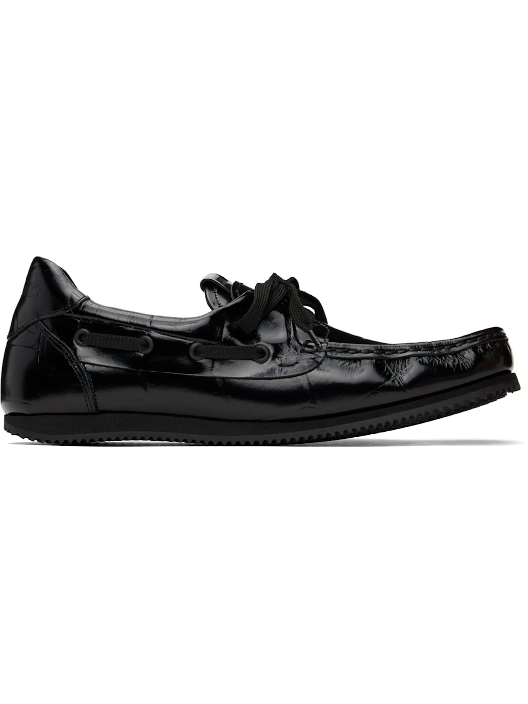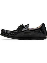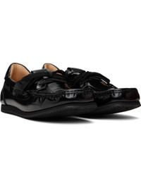 Croc-embossed calfskin loafers in black. · Square moc toe · Lace-up closure · Logo patch at tongue · Lace-up detailing at padded collar · Logo embossed at heel tab · Buffed leather and suede lining · Treaded rubber sole Part of the La Croisiere collection. Supplier color: Black Upper: calfskin. Sole: rubber. Made in Portugal 251553M239002