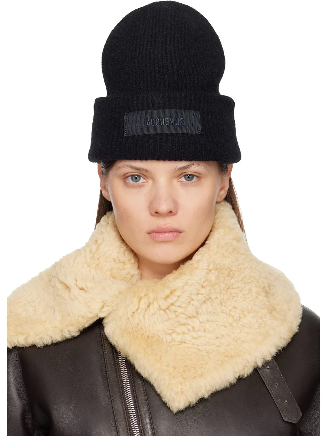 Rib-knit alpaca- and wool-blend beanie. Logo patch at rolled brim. Part of the La Croisiere collection. Supplier color: Black Body: 49% alpaca, 30% polyamide, 21% wool. Trim: 100% cotton. Made in Italy 252553F014002
