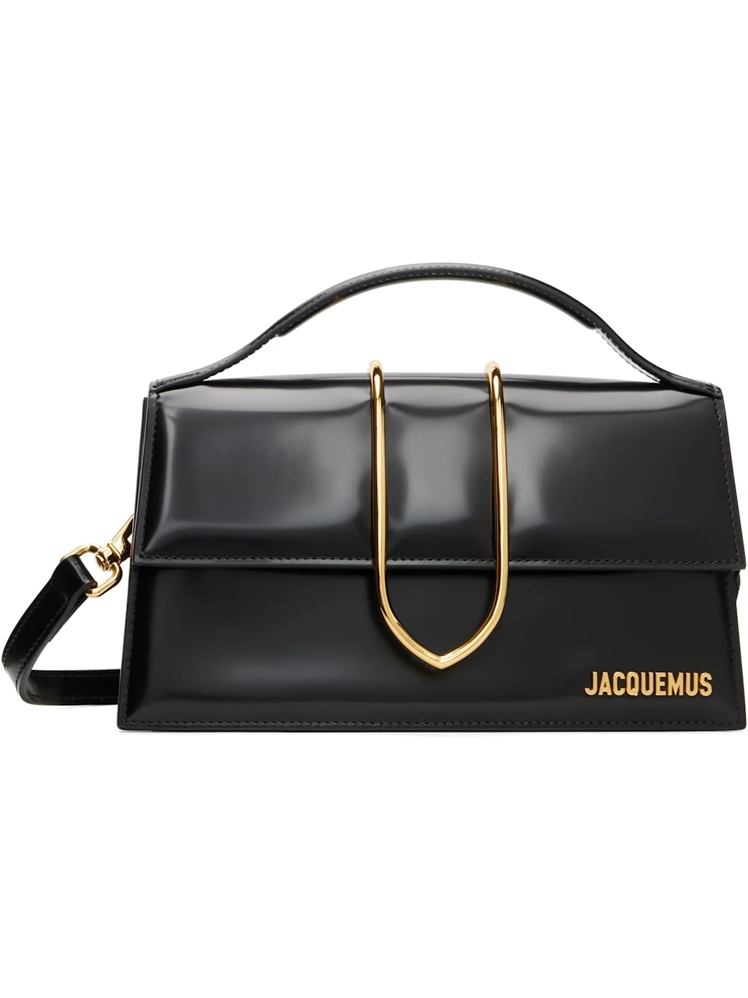 Buffed calfskin shoulder bag. · Fixed carry handle · Adjustable and detachable crossbody strap · Logo hardware at face · Card slot at back face · Hardware at magnetic flap · Card slot at interior · Cotton twill lining · Logo-engraved gold-tone hardware · H5" x W9" x D2.75" Part of the La Croisiere collection. Supplier color: Black Body: 100% calfskin. Lining: 100% cotton. Made in Italy 261553F048037