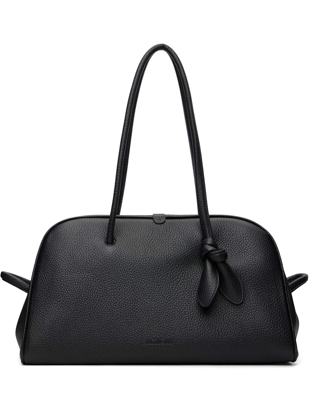 Grained calfskin messenger bag. · Rolled shoulder straps · Knotted detailing at strap base · Logo embossed at face · Strap at sides · Magnetic fastening at top · Zip closure · Zip pocket at interior · Cotton twill lining · H9" x W15" x D7" Part of the La Croisiere collection. Supplier color: Black Calfskin. Made in Italy 252553M170010