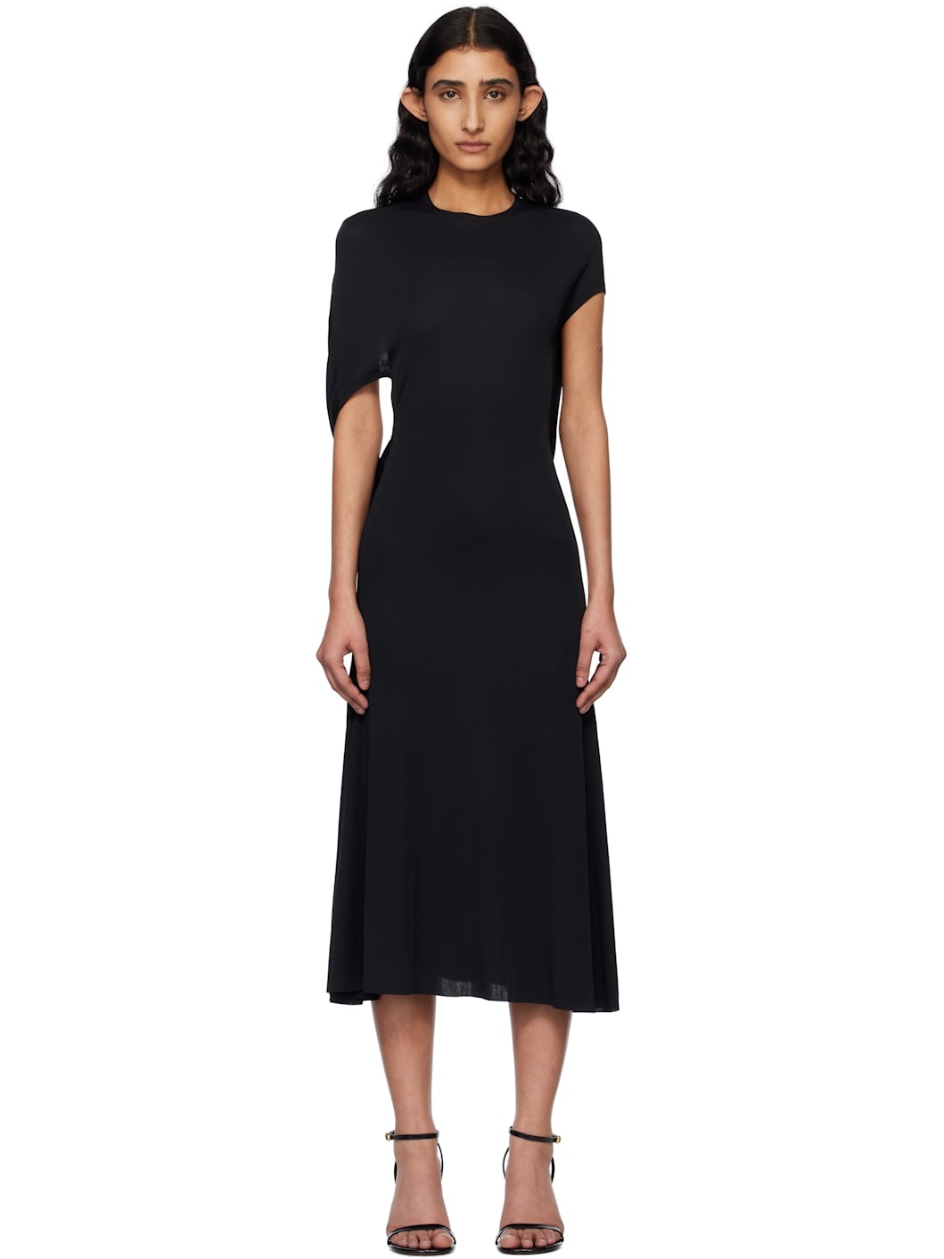 Viscose- and nylon-blend jersey midi dress. · Asymmetric construction · Crewneck · Raw edge at hem · Twisted detailing and draping at open back · Unlined Part of the La Croisiere collection. Supplier color: Black 82% viscose, 18% polyamide. Made in Portugal 251553F054014
