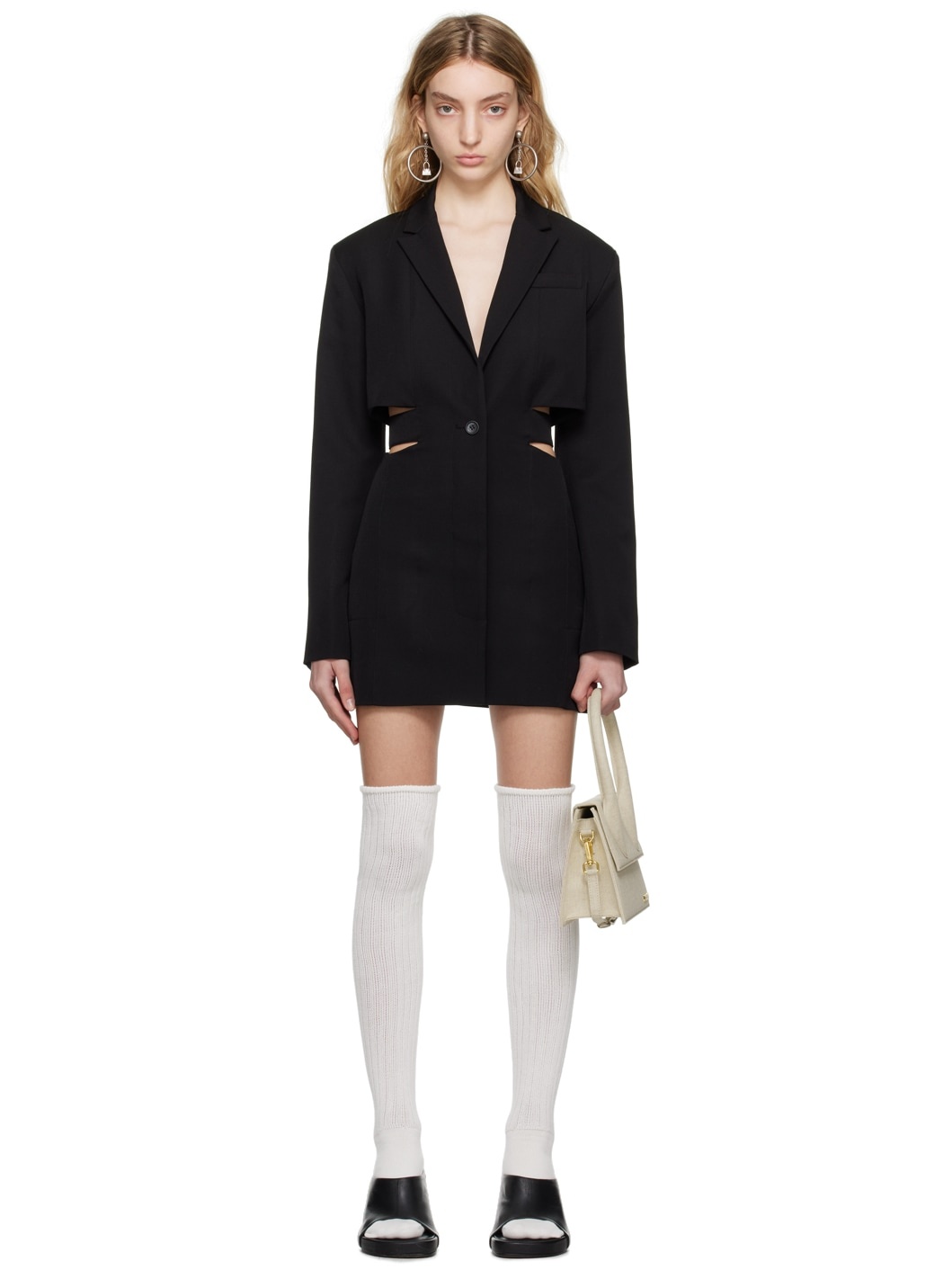 Plain-woven stretch virgin wool blazer-style dress. · Notched lapel · Single-button closure · Welt pocket at chest and back · Cutouts at waist · Padded shoulders · Single-button cuffs · Strap with button fastening at back · Twill lining Part of the Le Papier collection. Supplier color: Black 98% virgin wool, 2% elastane. Made in Romania 231553F052004