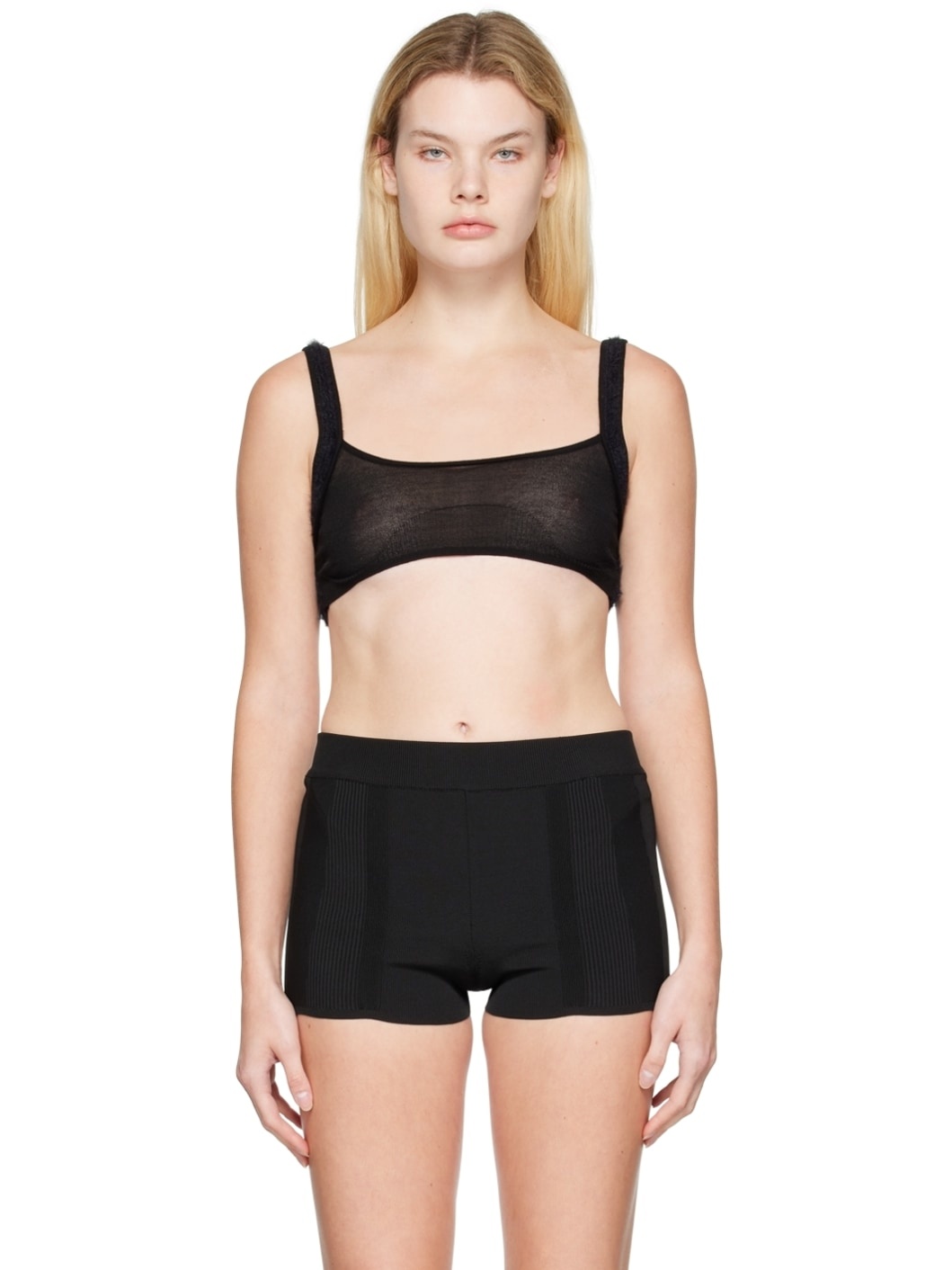 Paneled knit and rib knit stretch nylon-blend bra. · Square neck · Fixed shoulder straps · Unlined Part of the Le Papier collection. Supplier color: Black 70% polyamide, 12% cotton, 12% viscose, 5% polyester, 1% elastane. Made in Portugal 222553F073023
