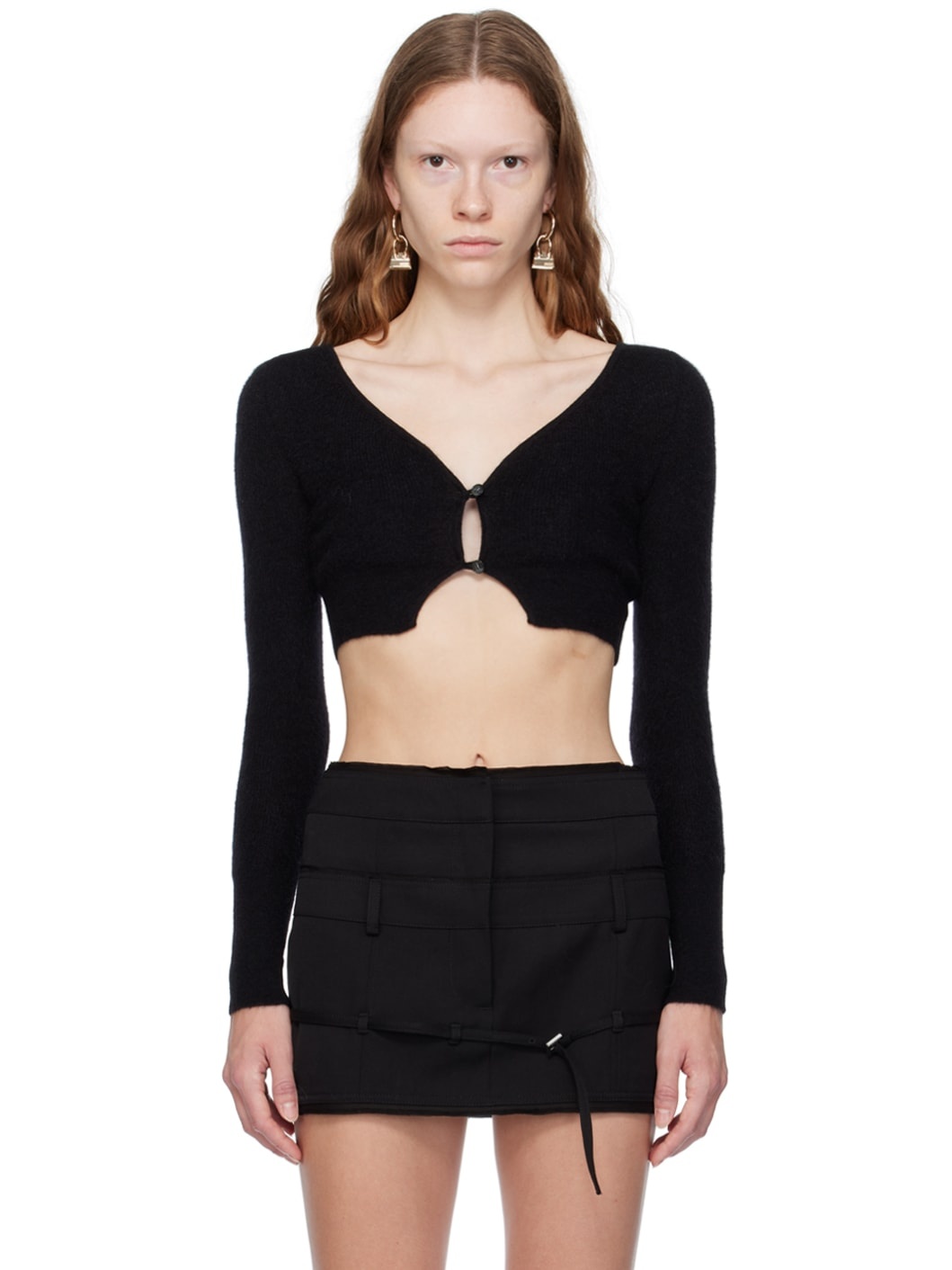 Knit mohair-blend cardigan. · Y-neck · Two-button closure · Rib knit cropped hem and cuffs Part of the Le Papier collection. Supplier color: Black 50% mohair, 36% polyamide, 14% wool. Made in Italy 232553F095019