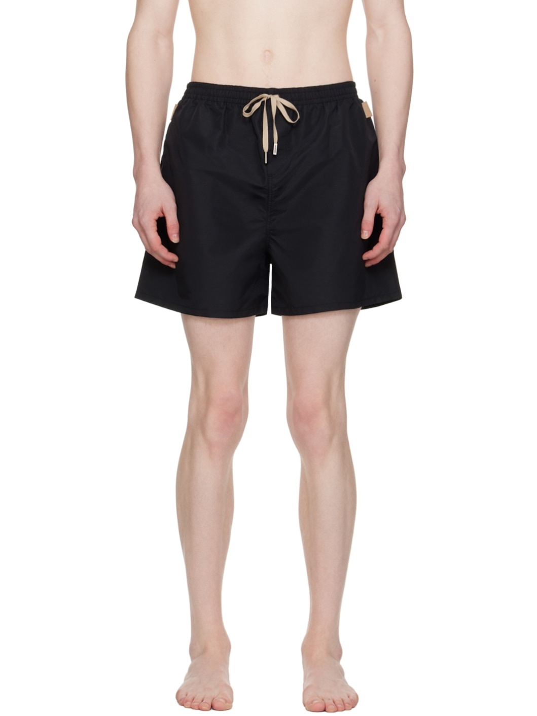 Nylon twill swim shorts. · Drawstring at elasticized waistband · Single-pocket styling · Mock-fly · Logo-woven grosgrain strap at outseams and back · Mesh briefs-style underlay Part of the Le Raphia collection. Supplier color: Black Body: 100% polyamide. Lining: 100% polyester. Made in Portugal 241553M208000