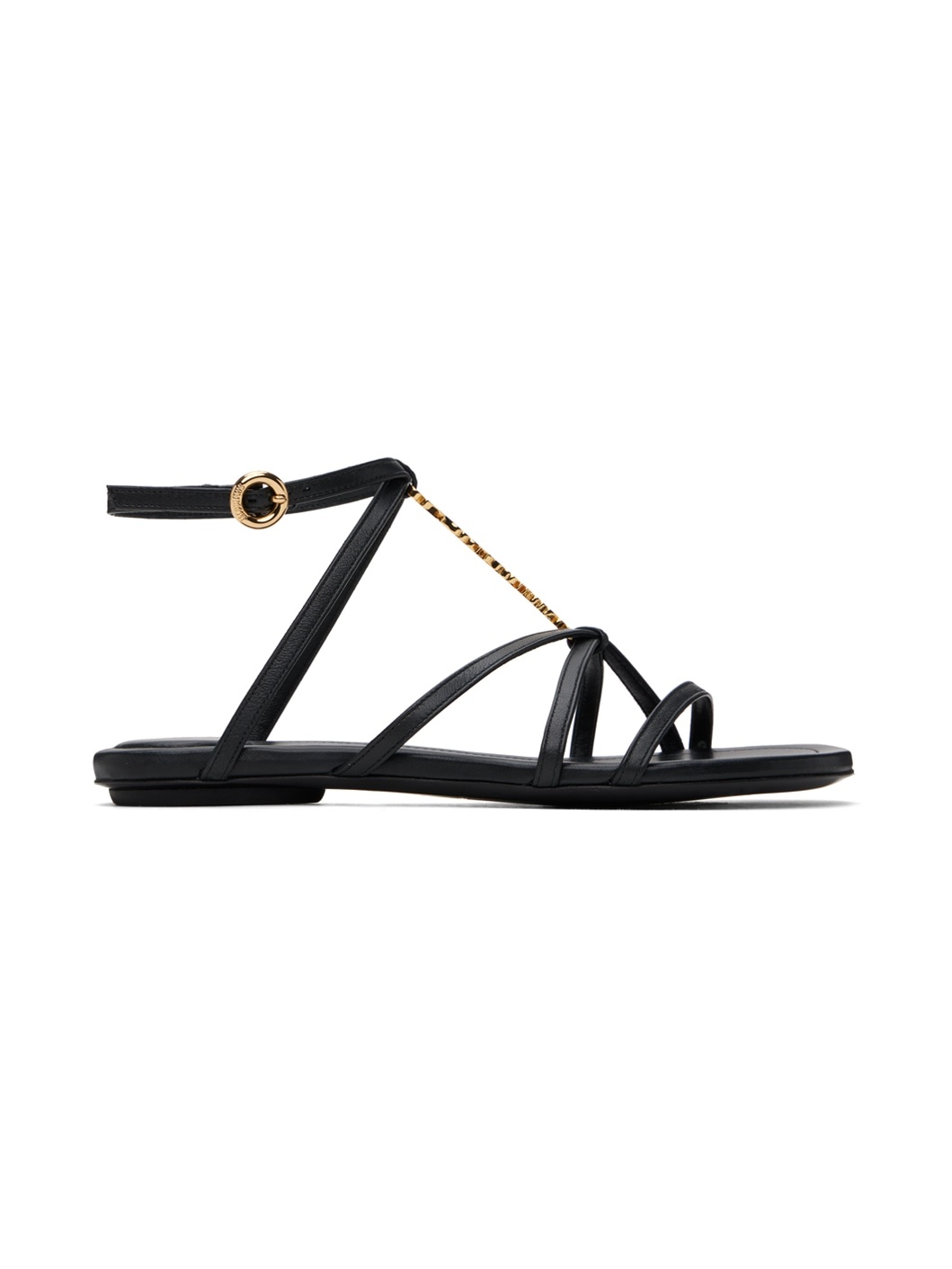 Grained leather flat sandals in black. · Open square toe · Logo hardware at vamp · Adjustable pin-buckle ankle strap · Logo embossed at padded footbed · Leather sole · Logo-engraved gold-tone hardware Part of the Les Classiques collection. Supplier color: Black Leather. Made in Italy 241553F124000