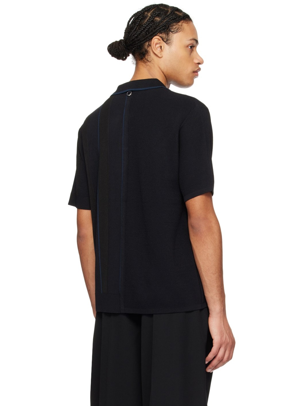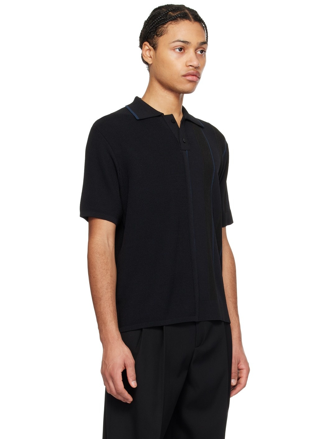 Viscose- and nylon-blend barathea polo. Rib knit panel and stripes throughout. · Spread collar · Two-button placket · D-ring at back collar Part of the Les Sculptures collection. Supplier color: Black