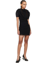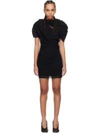 Semi-sheer polyester chiffon minidress. Draping and gathering throughout. · Layered construction · Cowl neck · Cutout at chest · Zip closure at side seam · Padded shoulders · Hook-eye fastening at back collar · Open back · Full stretch jersey lining Supplier color: Black Body: 100% polyester. Body 2: 80% polyamide, 20% elastane. Lining: 97% cotton, 3% elastane. Fill: 100% polyester. Made in Portugal 251553F052036
