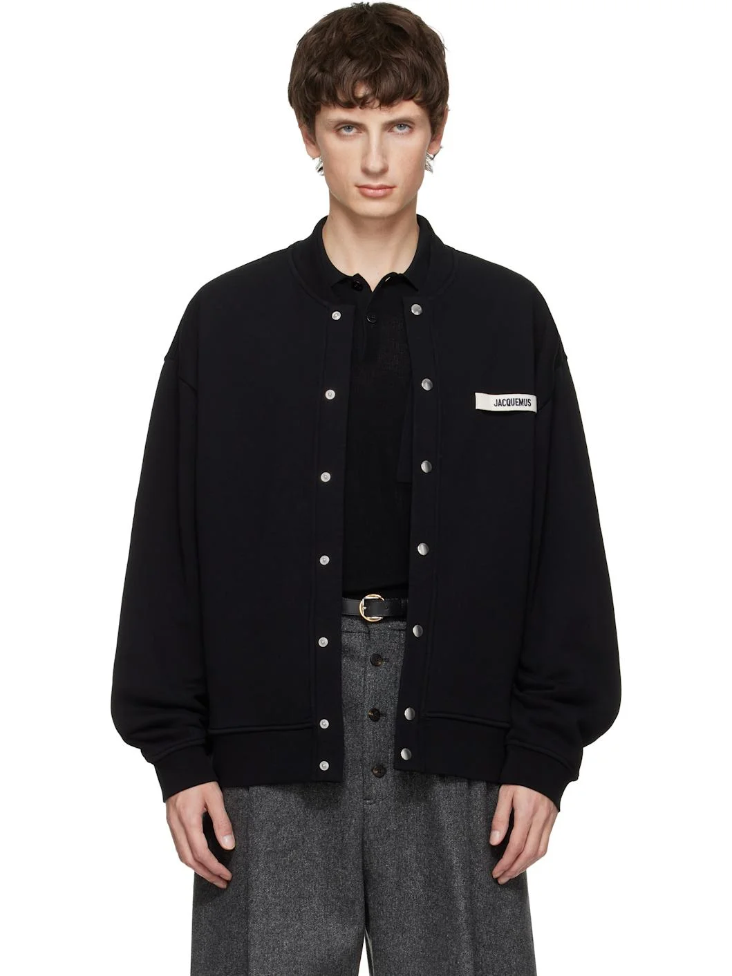 Cotton fleece cardigan. · Rib-knit stand collar, hem, and cuffs · Press-stud closure · Grosgrain logo patch at chest · Seam pockets · Dropped shoulders Supplier color: Black 100% cotton. Made in Portugal 252553M200000