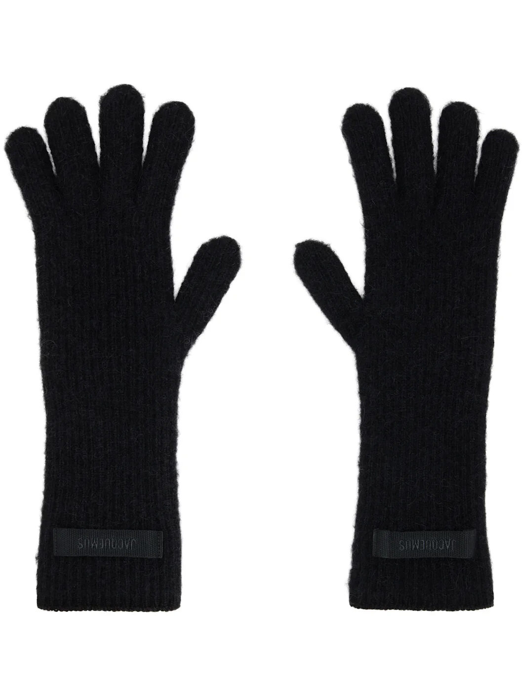 Pair of brushed rib-knit alpaca- and wool-blend gloves. Logo patch at cuffs. Supplier color: Black Body: 49% alpaca, 30% polyamide, 21% wool. Trim: 100% cotton. Made in Italy 252553F012000