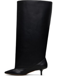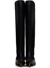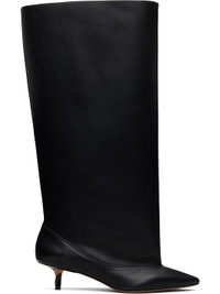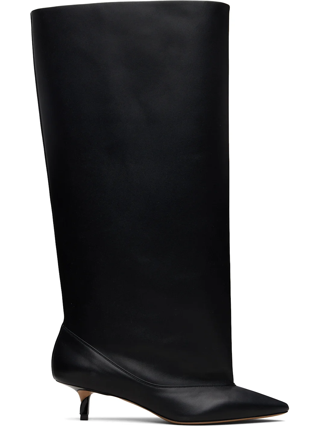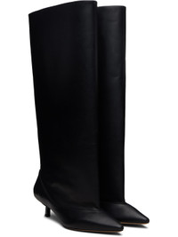 Knee-high grained calfskin boots. · Pointed toe · Twisted covered stiletto heel with rubber injection · Leather sole · Heel: H1.75" Supplier color: Black Upper: calfskin. Sole: leather, rubber. Made in Italy 252553F115000