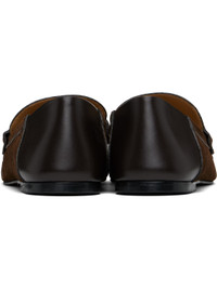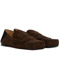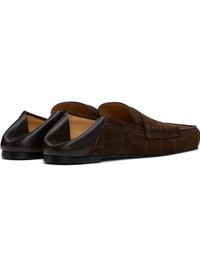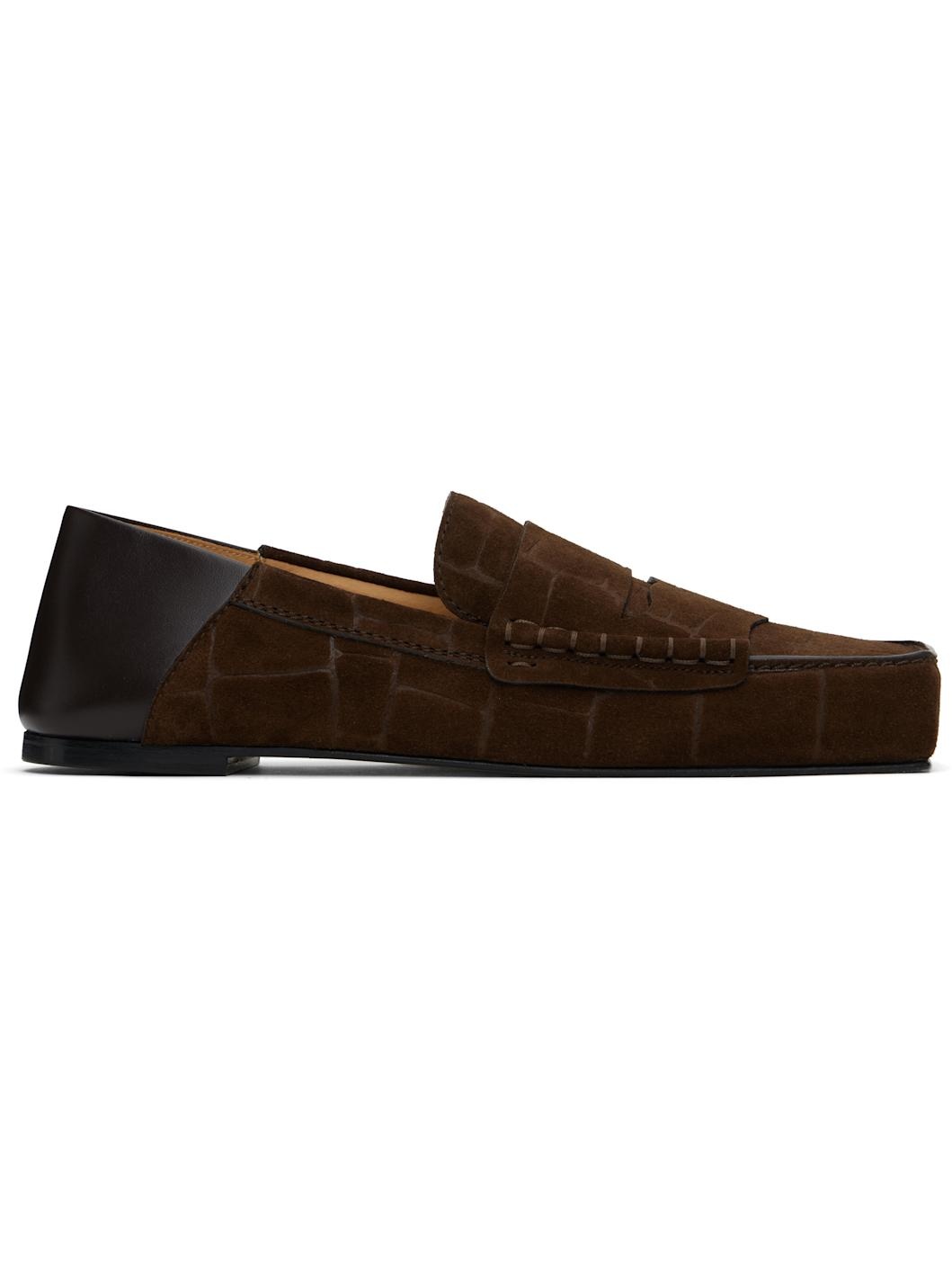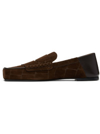 Croc-embossed calfskin suede loafers in brown. · Exposed hand-stitched seams throughout · Square moc toe · Strap with cutout at vamp · Collapsible buffed calfskin heel counter · Buffed lambskin lining · Leather sole Part of the La Croisiere collection. Supplier color: Dark brown Upper: calfskin. Sole: leather. Made in Italy 251553M231002