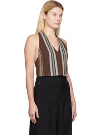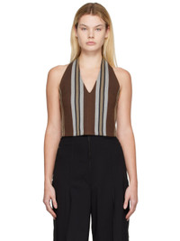 Stretch cotton-blend twill tank top. Stripe pattern throughout. · Self-tie halter strap · Self-tie strap at back · Acetate-blend satin lining Part of the Le Papier collection. Supplier color: Brown stripes Body: 96% cotton, 3% polyamide, 1% elastane. Lining: 67% acetate, 33% polyester. Made in Bulgaria 222553F111056