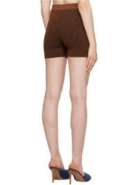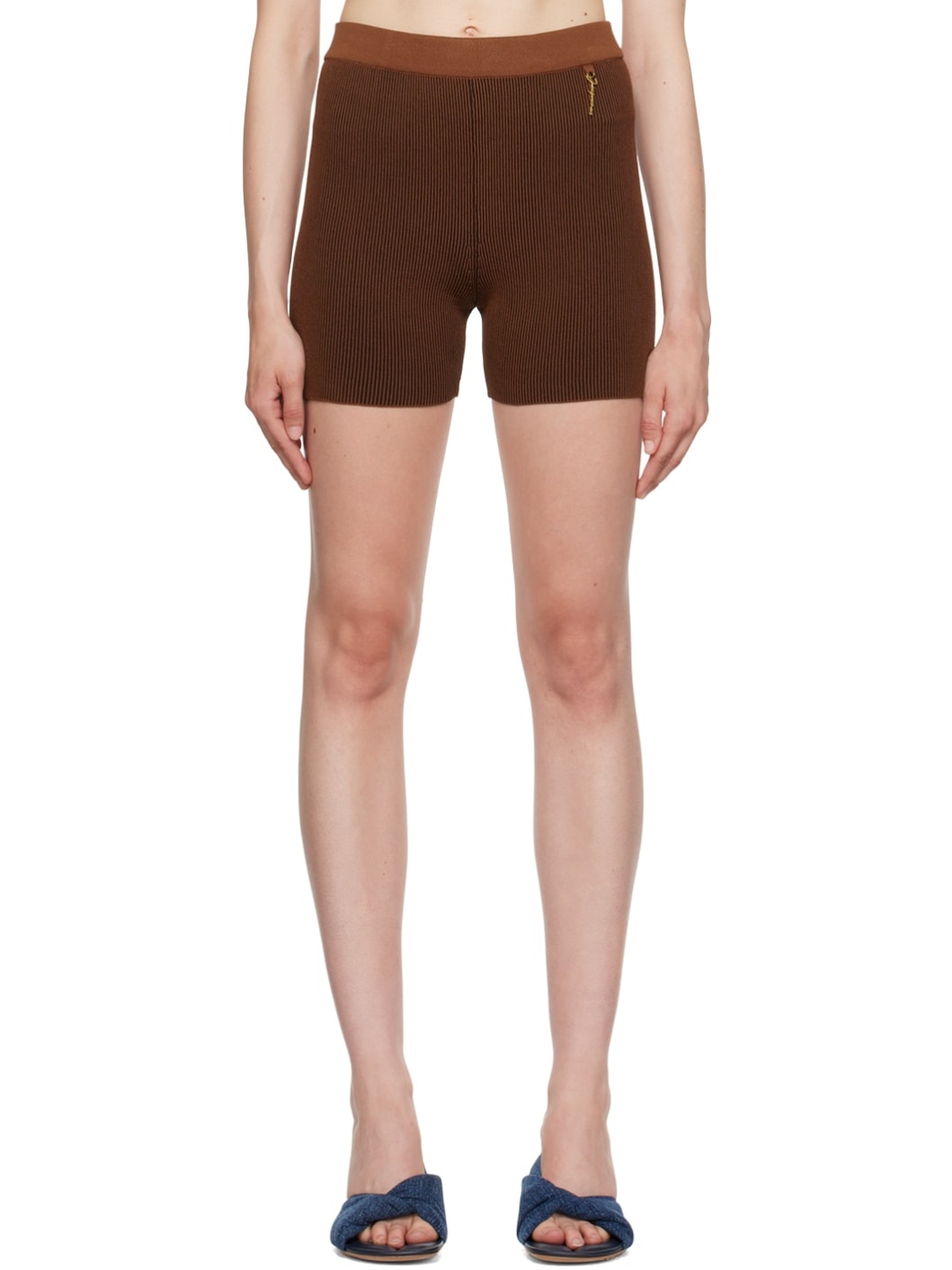 Rib knit stretch viscose-blend shorts. · Elasticized waistband · Logo hardware at front Part of the Le Raphia collection. Supplier color: Brown 80% viscose, 10% polyester, 10% polyamide. Made in Portugal 231553F088010