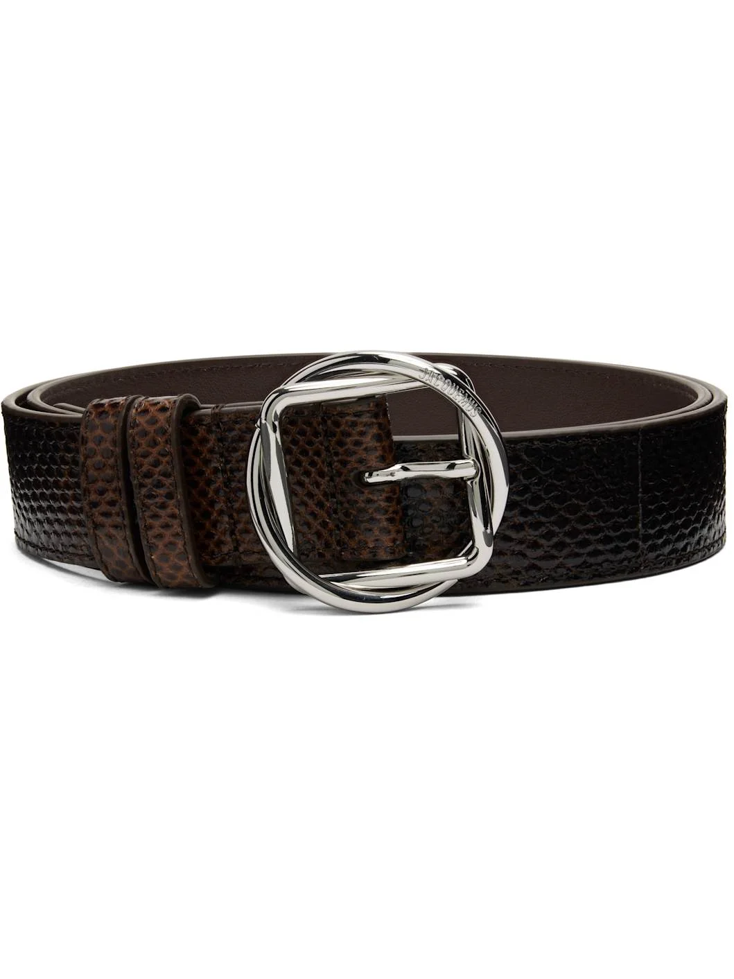 Snakeskin-embossed leather belt. · Logo-engraved O-ring at pin-buckle fastening · Silver-tone hardware · W0.75" Supplier color: Dark brown 100% leather. Made in Italy 252553M131003
