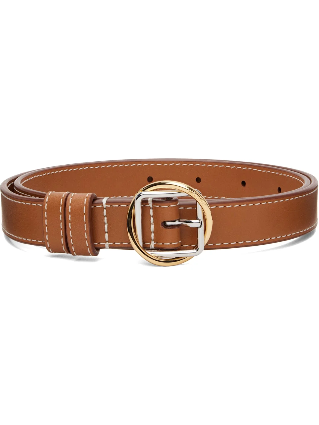 Buffed leather belt. · Keeper loops at length · Pin-buckle fastening · Logo-engraved gold- and silver-tone hardware · Contrast stitching in white · W0.75" Supplier color: Light brown 100% leather. Made in Italy 261553F001002