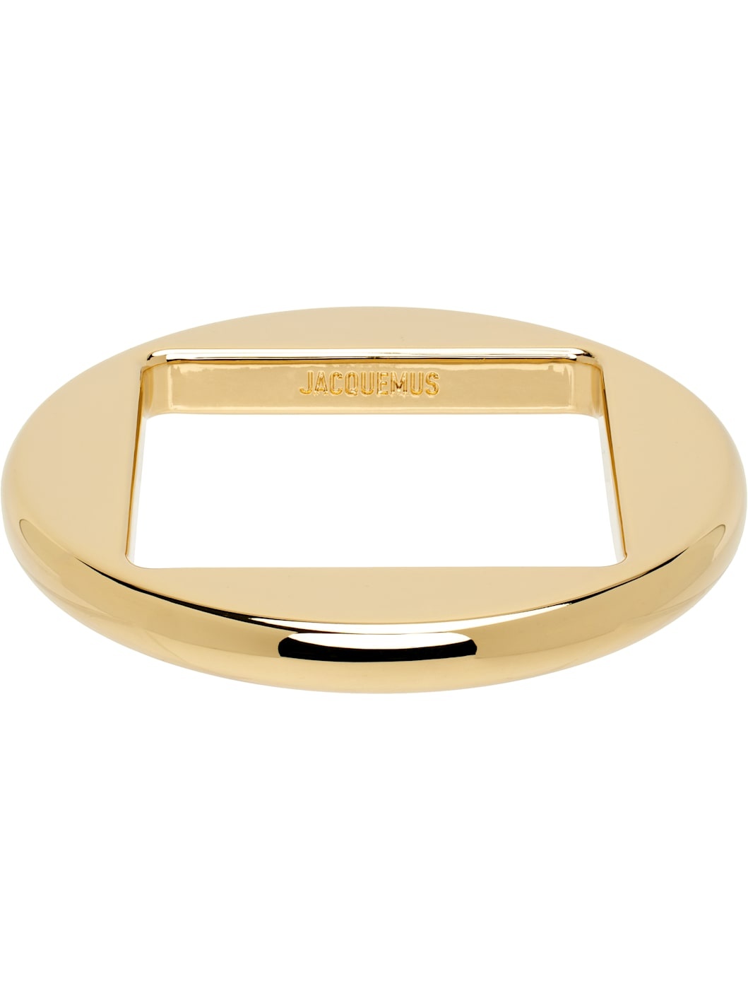 Cuff bracelet in pale gold-tone brass. · Logo engraved at inner band · D4" Supplier color: Light gold Brass. Made in Italy 251553F020005