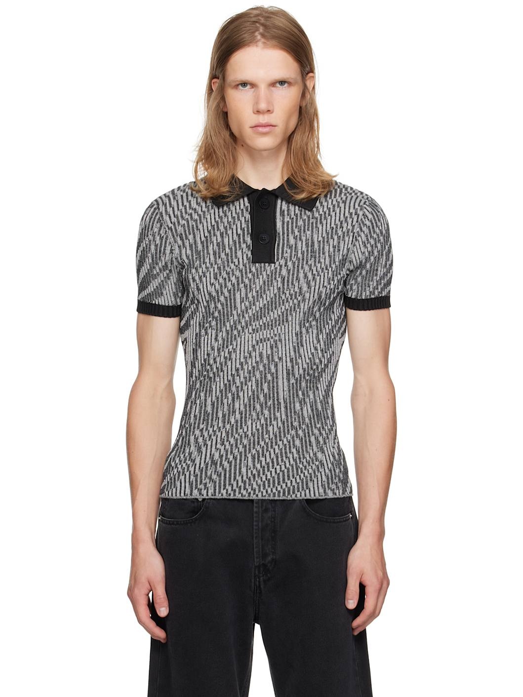 Rib knit cotton-blend polo. Jacquard graphic pattern throughout. · Spread collar · Two-button placket · Logo-engraved corozo hardware Part of the La Casa collection. Supplier color: Black & white zebra 60% cotton, 20% polyamide, 20% viscose. Made in Italy 242553M212000