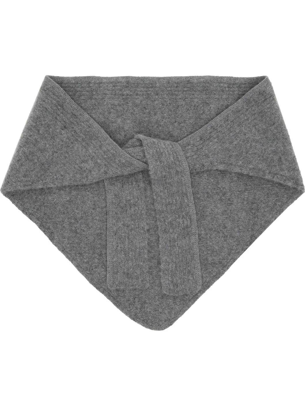 Triangular brushed rib knit alpaca- and wool-blend scarf. · Logo patch at face · L52" x W16" Part of the La Casa collection. Supplier color: Dark grey Body: 49% alpaca, 30% polyamide, 21% wool. Trim: 100% cotton. Made in Italy 252553M150026