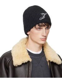 Rib-knit merino wool beanie. Logo embroidered at face. Supplier color: Dark grey 100% merino wool. Made in Italy 252553M138007