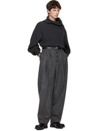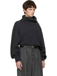 Heavyweight knit virgin wool- and cashmere-blend sweater. · Oversized · Rib-knit funnel neck, hem, and cuffs · Text embroidered at front · Dropped shoulders Supplier color: Dark grey 90% virgin wool, 10% cashmere. Made in Italy 252553M205000