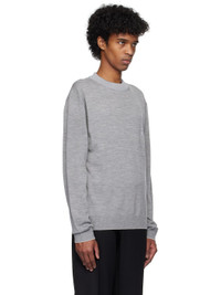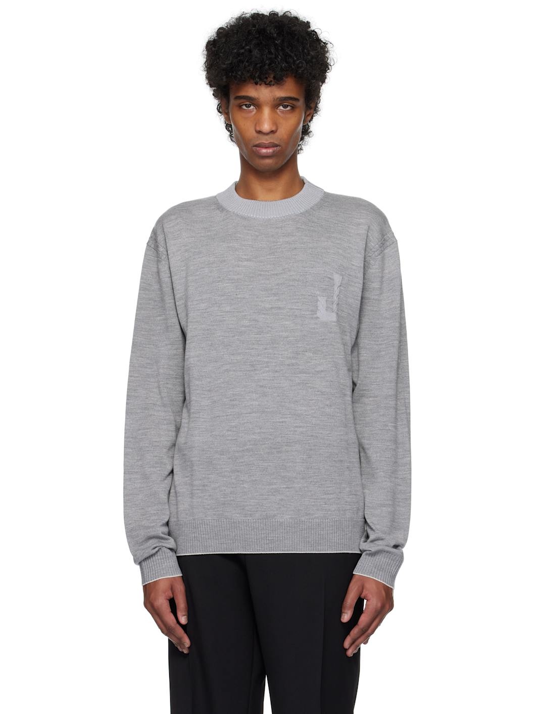 Knit wool-blend sweater. Cable-knit detailing throughout. · Rib-knit crewneck, hem, and cuffs · Embroidered logo at chest · Stripe at hem and cuffs · Dropped shoulders Supplier color: Grey 90% wool, 8% viscose, 1% polyester, 1% polyamide. Made in Romania 251553M201004